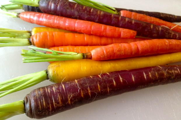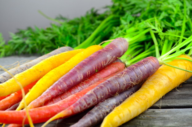 Healthy, tasty, baby carrots in orange, red, yellow, purple and even black.
